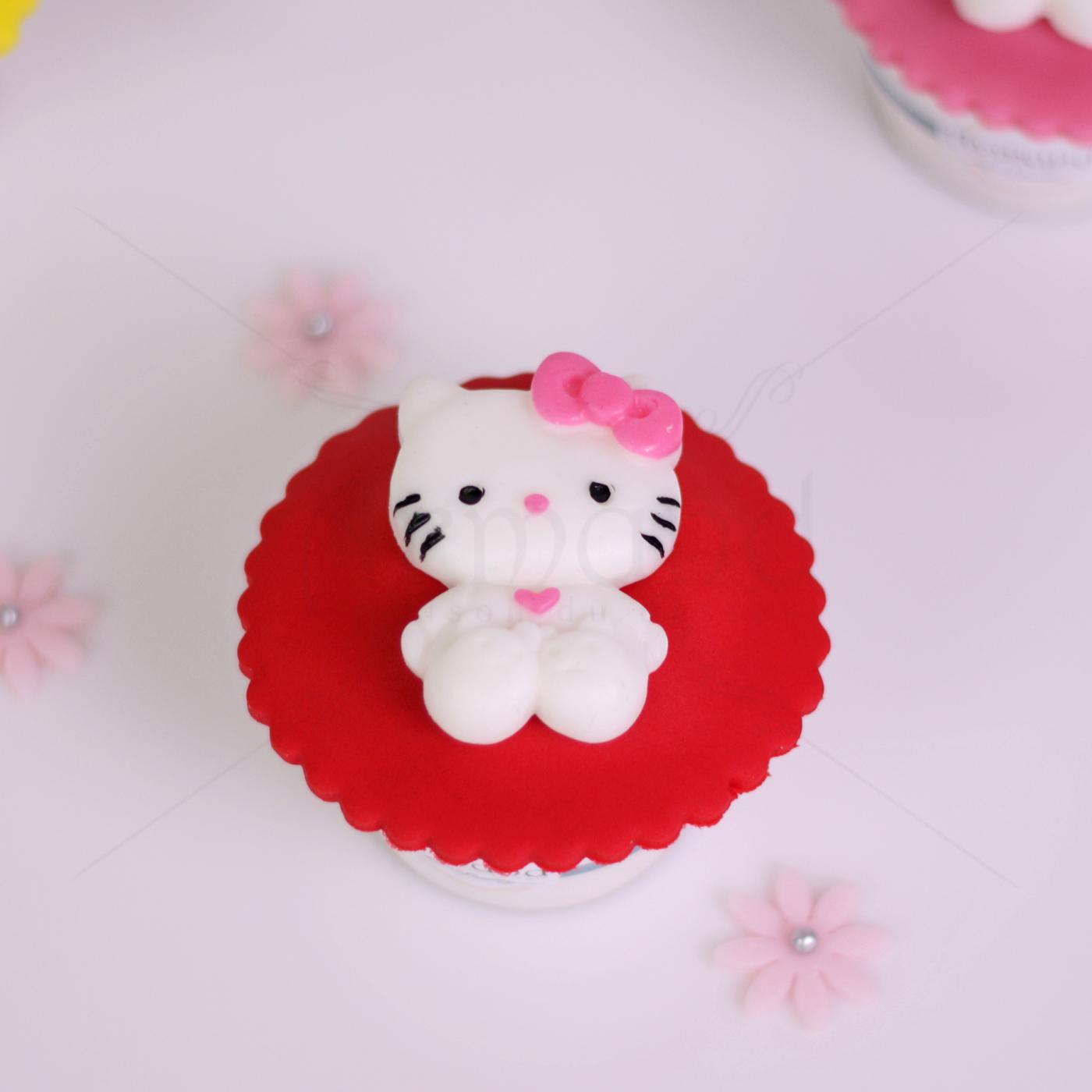 Hello Kitty, o pisicuta atat de indragita de fetite, este de astazi decorul colorat vesel al cupcake-urilor aniversare.