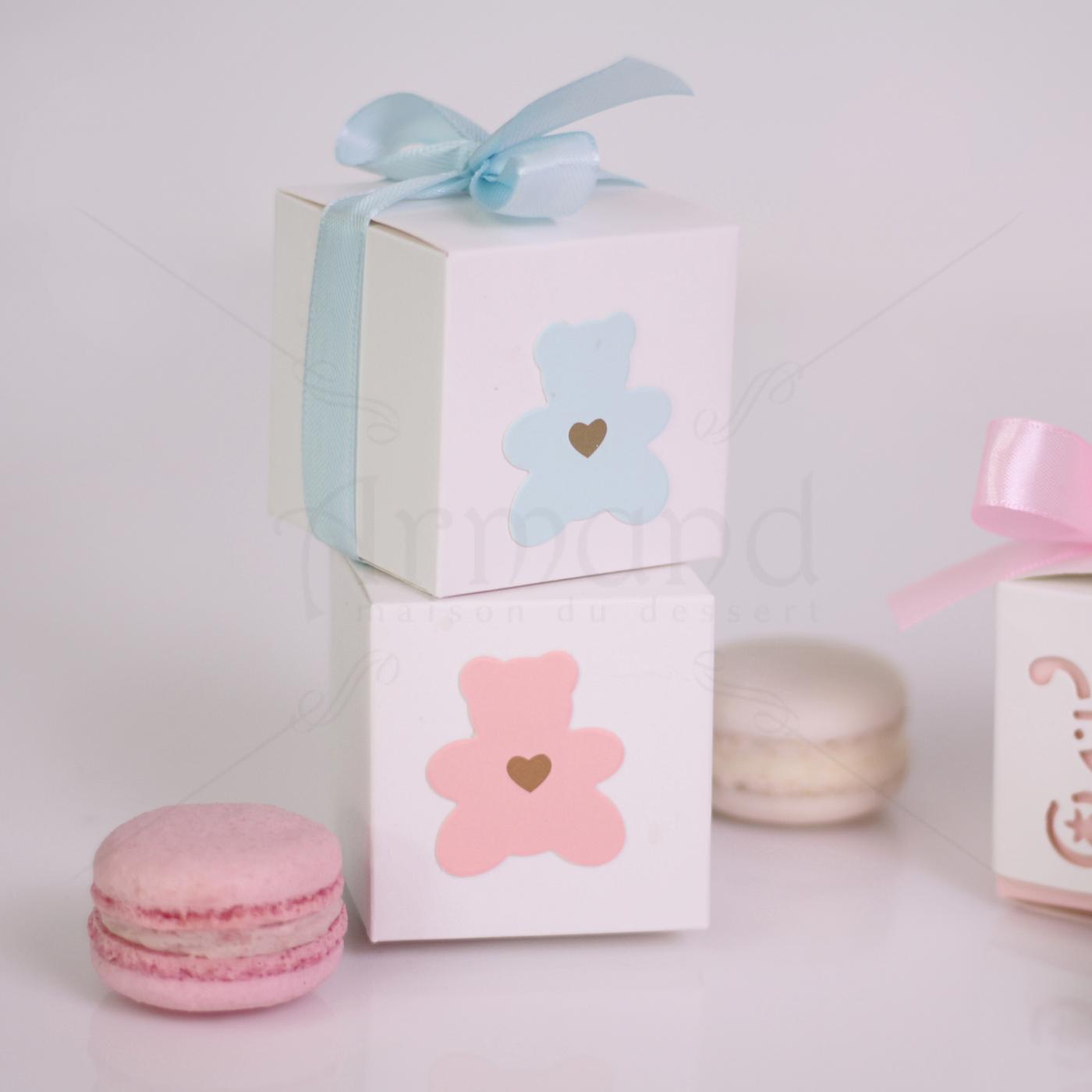 Cutiuța cub permite includerea a două macarons, oferindu-ți libertatea de a crea combinații vizuale și gustative deosebite (de exemplu: un macarons roz și unul bleu, sau două nuanțe din aceeași gamă).