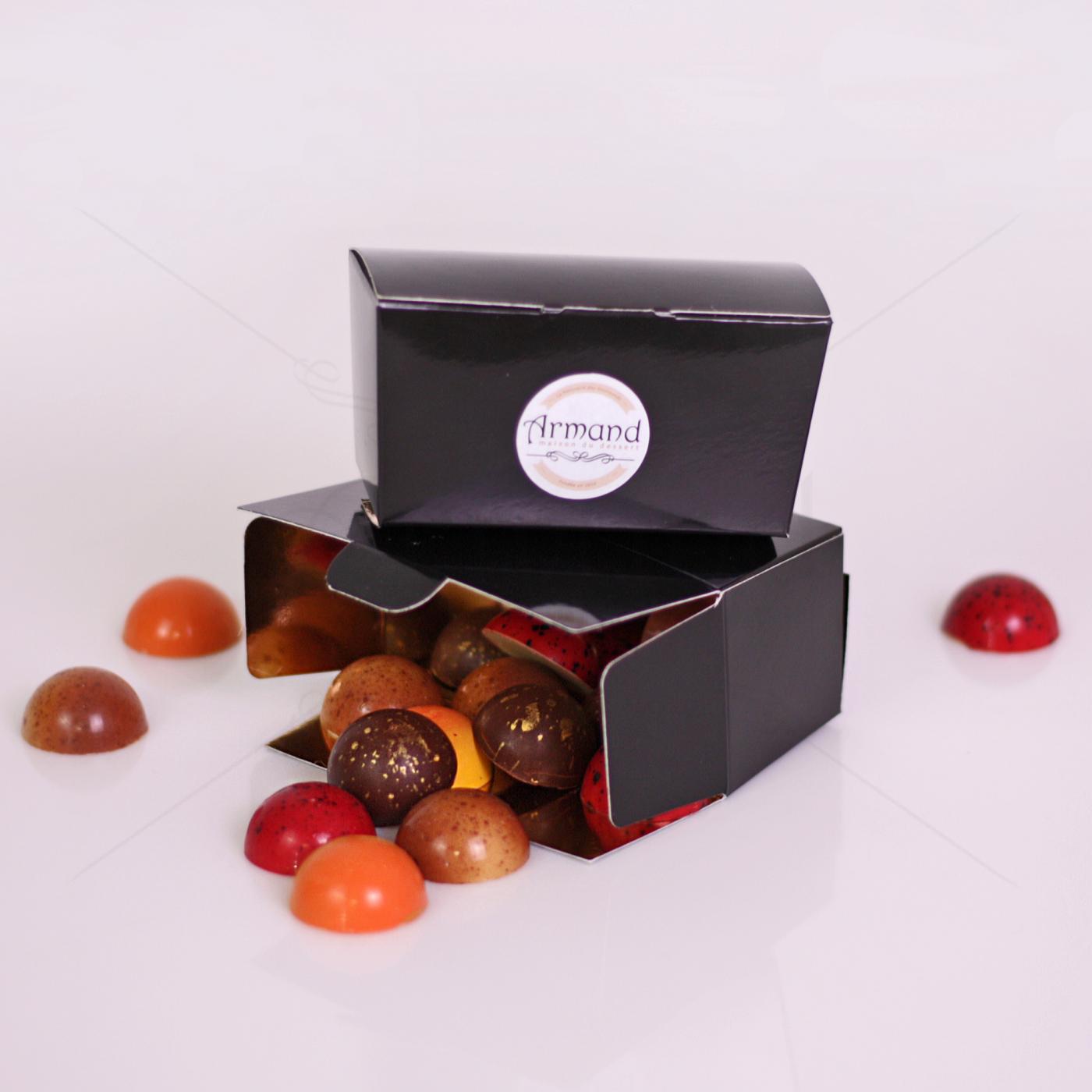 Cutia contine 15 praline(aproximativ 130grame)asortate. In cutie pot fi diverse sortimente din cele 6 arome.Ingrediente