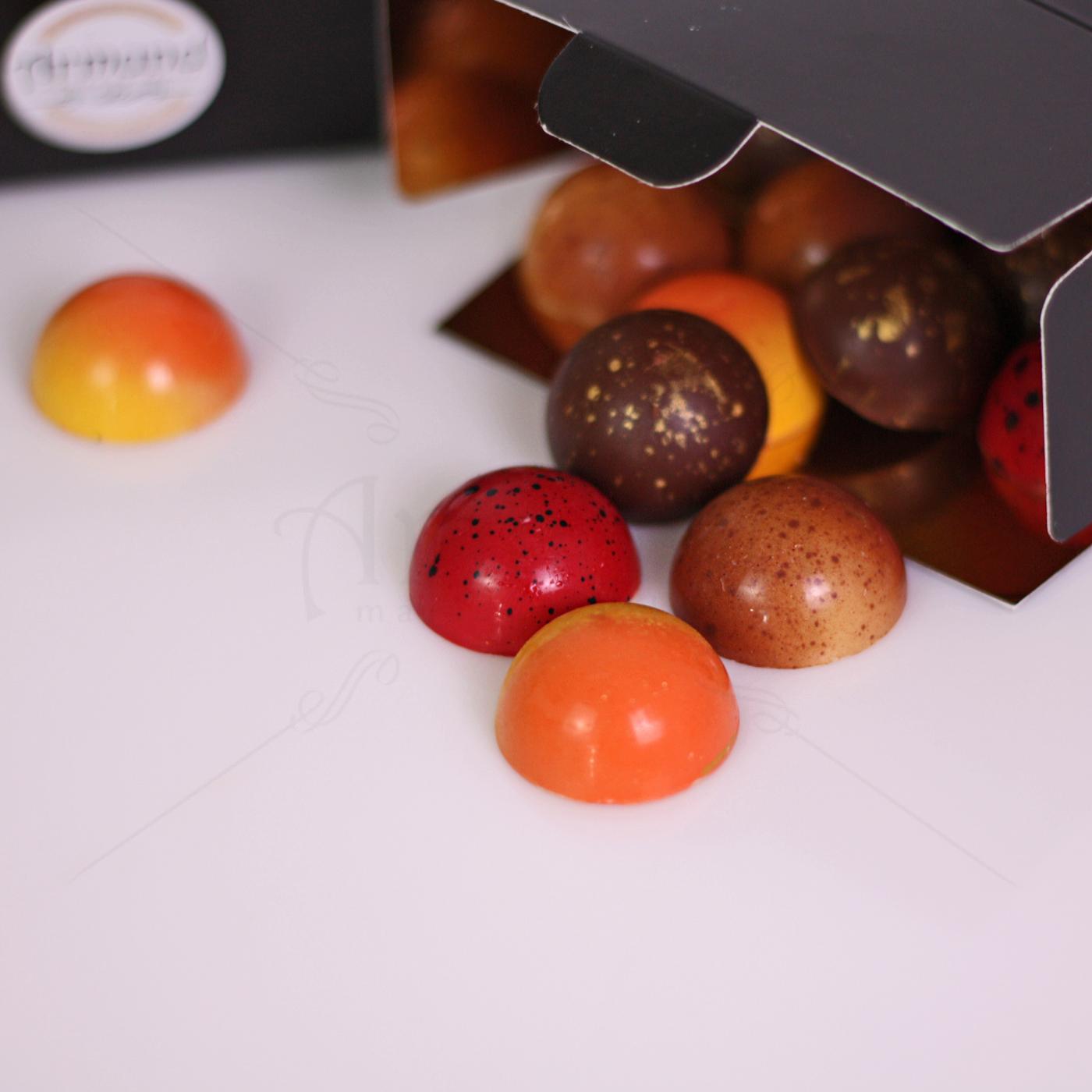 Din gama fac parte: praline cu ciocolata alba si cocos, ciocolata cu lapte si caramel sarat, ciocolata neagra si mango,ciocolata neagra si cafea, ciocolata neagra si zmeura si ciocolata neagra si lamaie.Detalii ingrediente