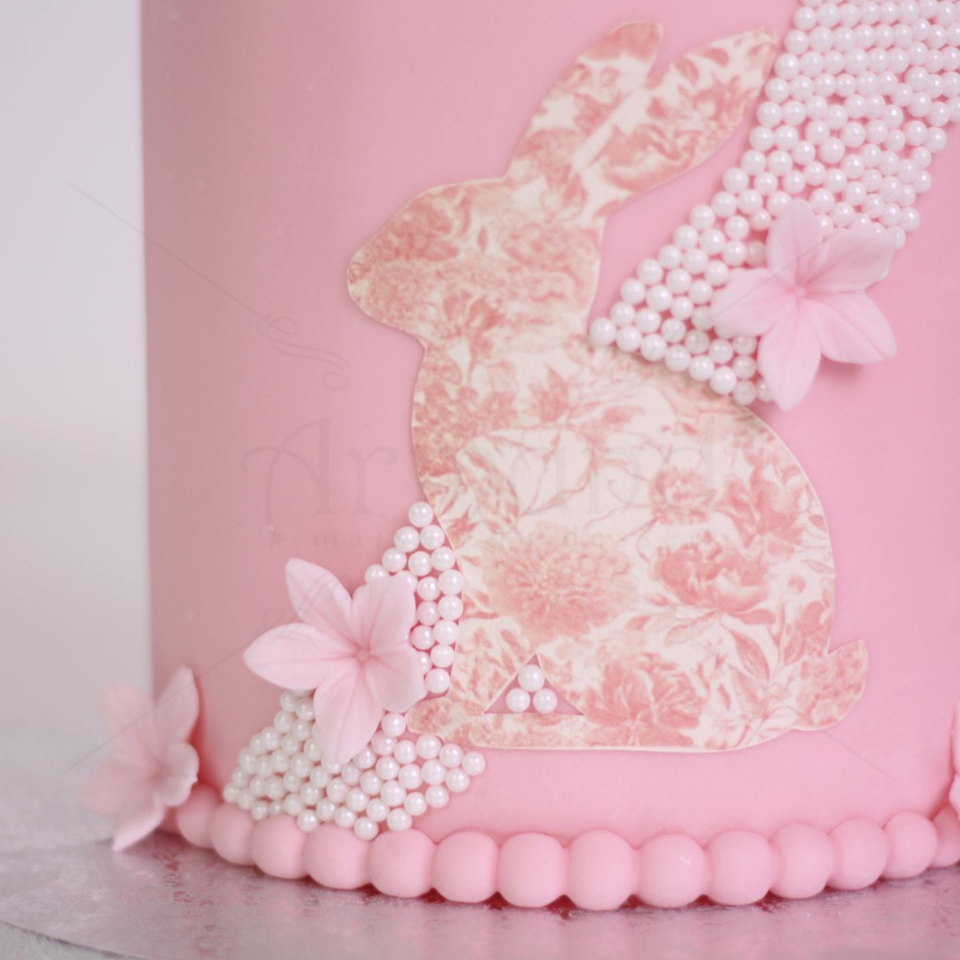 Acest tort este de o delicatețe rară, îmbinând perfect elementele tridimensionale cu tehnici de decor plat (broderie/imprimeu comestibil). Este alegerea ideală pentru o fetiță, fie că vorbim despre un botez, prima aniversare sau o sărbătoare de Paște plină de grație.