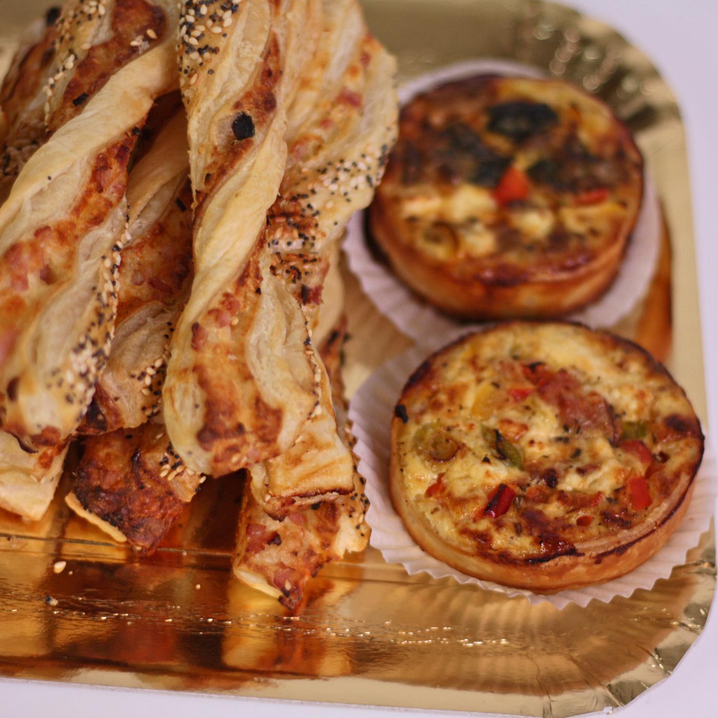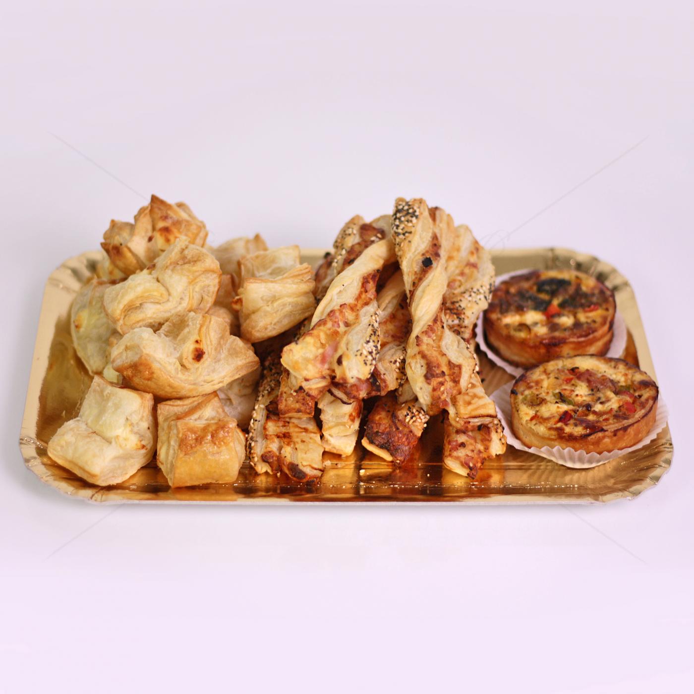 Transformă orice întâlnire într-un moment de răsfăț culinar cu Platoul Mini Brunch. Am reunit cele mai iubite gustări sărate, pregătite cu măiestrie pentru a oferi un echilibru perfect între textura crocantă a foietajului și umpluturile bogate și aromate. Portrivit pentru un mic dejun la birou sau întâlniri de afaceri, evenimente de tip recepție sau petreceri private sau pentru momentele în care vrei să oferi invitaților un mix sărat diversificat și elegant.