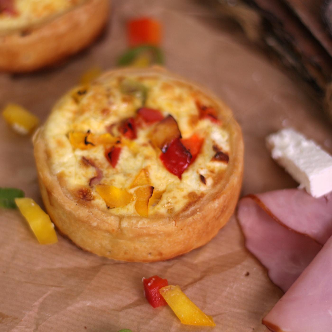 Quiche-ul nostru este interpretarea perfectă a clasicului franțuzesc, reinterpretat cu ingrediente locale de cea mai bună calitate. Într-o crustă fragedă și aurie din aluat cu unt, am așezat un mix generos de sunca, branza, ardei , ceapa, ce te va cuceri de la prima degustare.