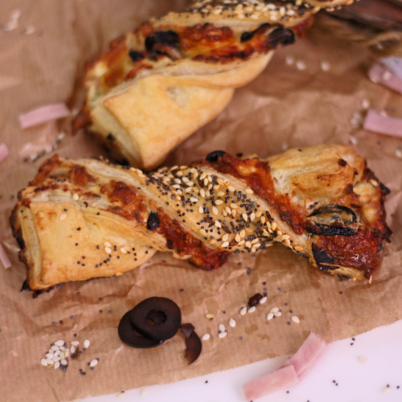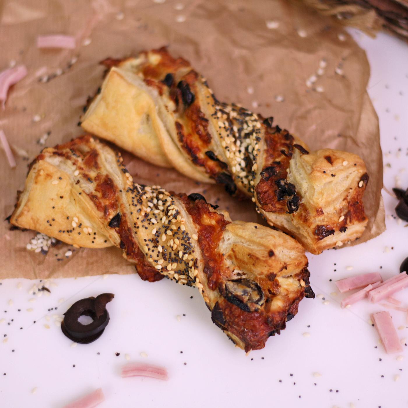Încearcă noul nostru foietaj twist ( rasucite), creat special pentru momentele când ai nevoie de o gustare rapidă, dar extrem de savuroasă. Realizat dintr-un aluat fraged cu unt 82%, stratificat cu grijă, aceste spirale aurii ascund în interior o combinație imbatabila de crema de branza fina, sunca si masline.