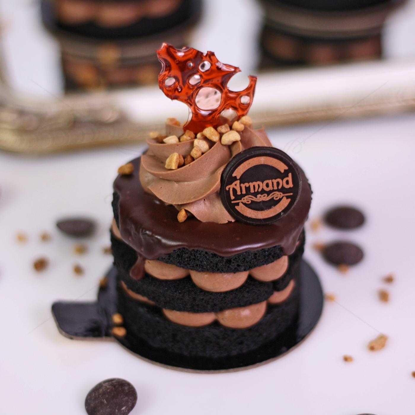 glazura {glasaj negru [frisca naturala, alune de padure crocante (zahar), pasta