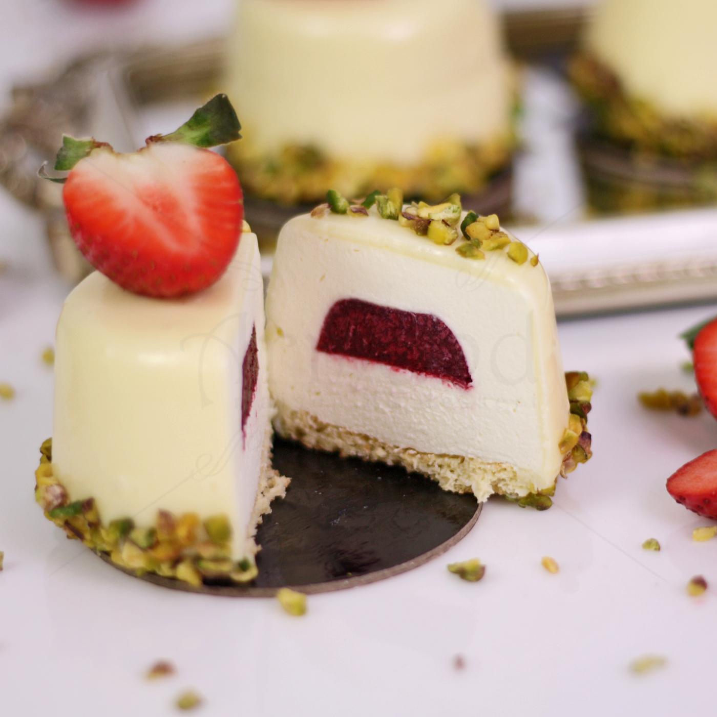 Aceasta prajitura , ca si tortul cu acelasi nume, combină finețea unui mousse de ciocolată albă fără zahăr adaugat, cu explozia de prospețime a unei insertii de visine. Contrastul dintre dulceața delicată a ciocolatei și gustul dulce acrisor al visinelor, creează un echilibru perfect, totul pe un blat cu indice glicemic scazut.