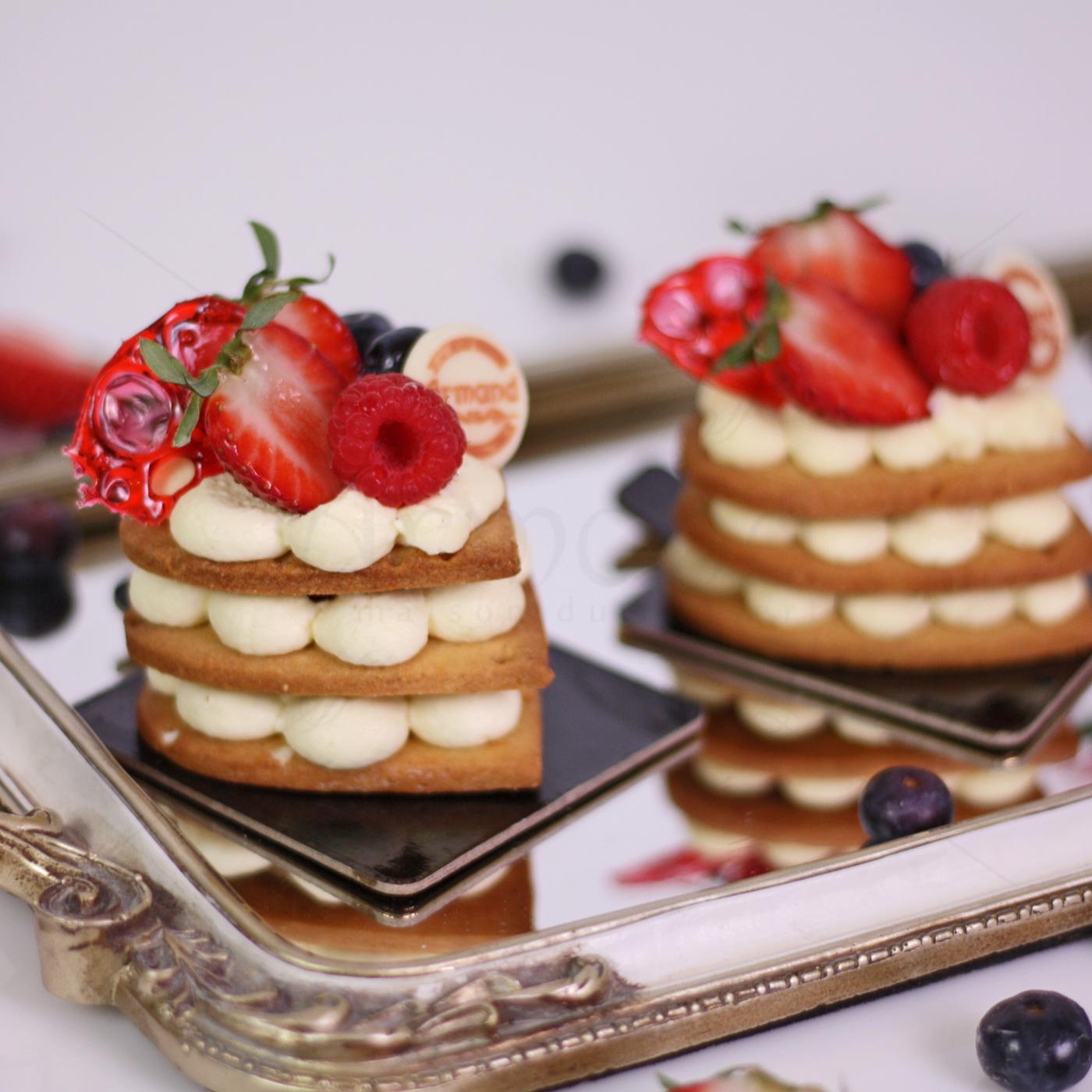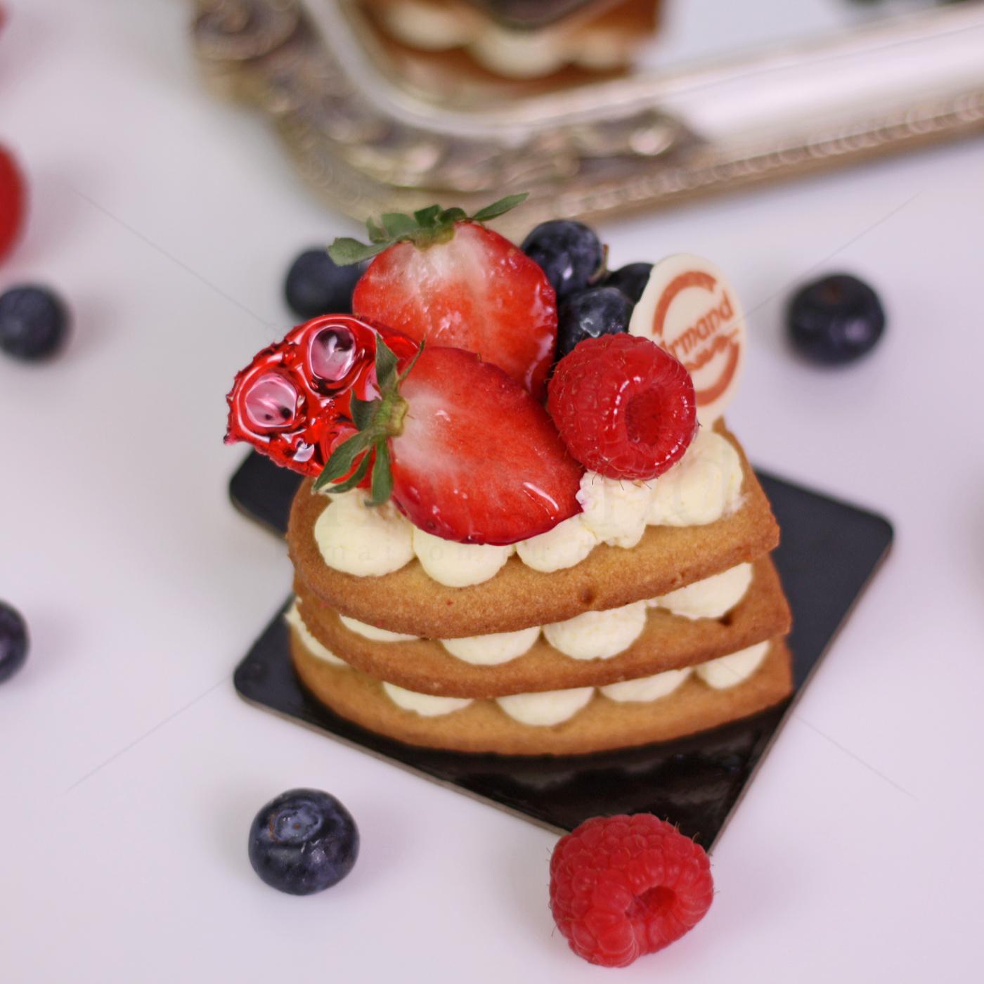Ingredinte: mascarpone, crema de branza, frisca naturala, zmeura, mure, afine, coacaze rosii si capsuni, macarons diverse sortimente si flori naturale.Gramajul poate varia cu +/- 200 grame