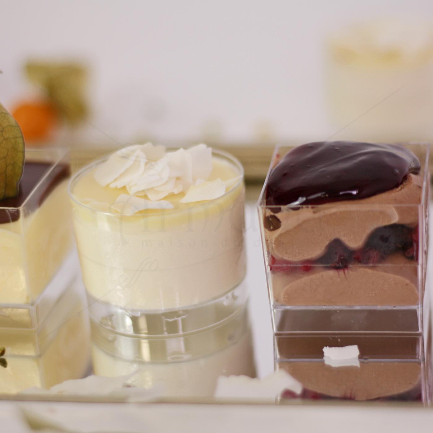 Elegantele si delicioasele pahare cu mousse sunt produsele ce nu trebuie sa lipseasca din candy barul petrecerii tale. Se pot realiza cu mai multe sortimente de mousse.