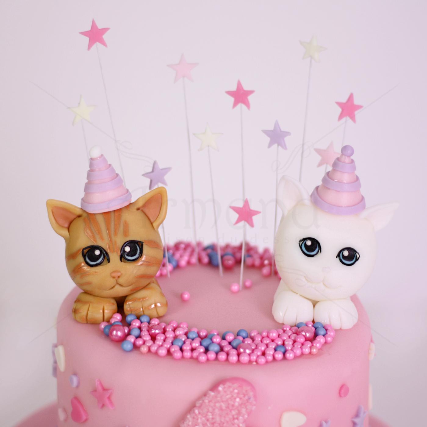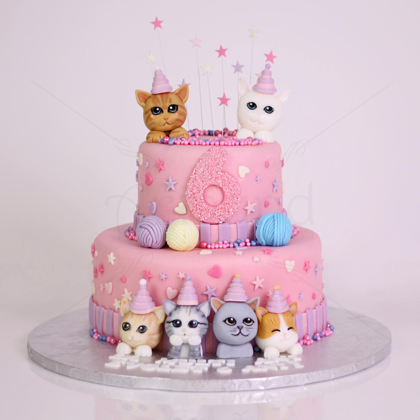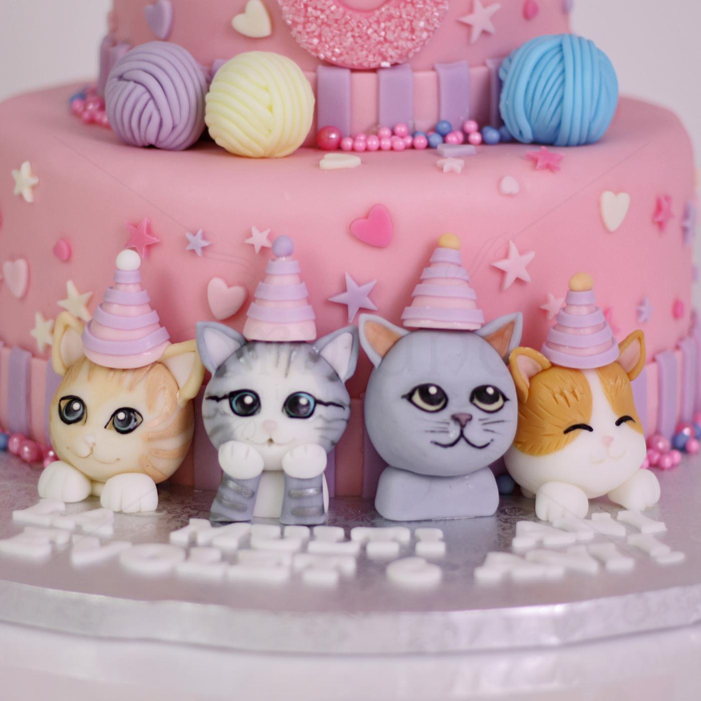 O petrecere felină dulce și adorabilă! Acest tort cu două etaje este plin de pisicuțe modelate manual, ghemuri de ață colorate și mult roz. Perfect pentru un Sweet Six de neuitat! Neow!