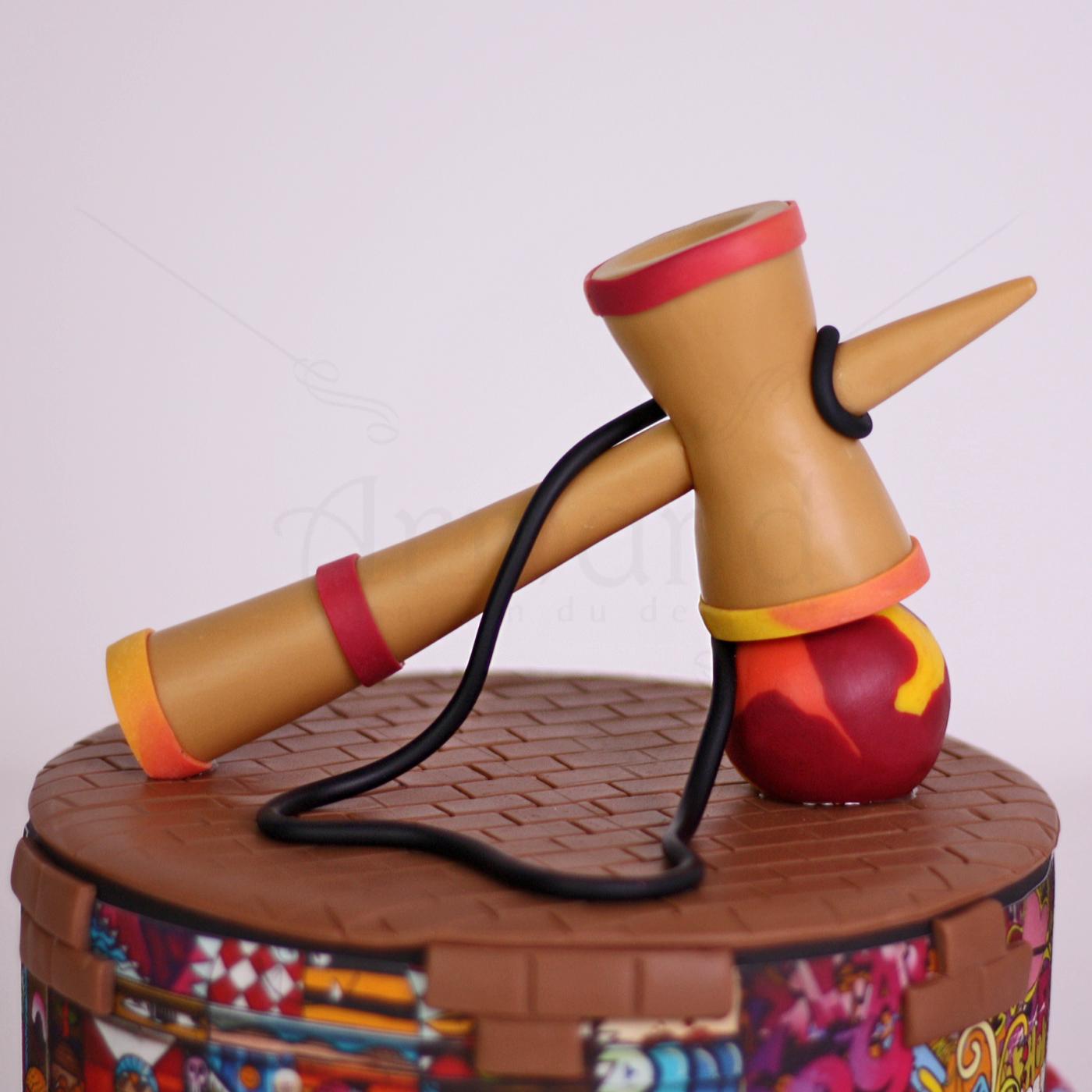 Kendama, o jucarie populara care face furori in ultima vreme, estede astazi si detaliul ce personalizeaza acest tort delicios.