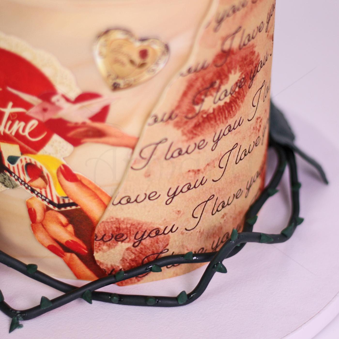 Acest tort este cadoul perfect pentru cei care iubesc estetica retro și poveștile de dragoste clasice.Decorul sau îmbină eleganța ilustrațiilor vintage cu mesaje de iubire atemporale.Detaliile lucrate manual transformă acest tort într-o declarație de dragoste memorabilă, potrivită pentru o seară de Valentine's Day plină de rafinament.